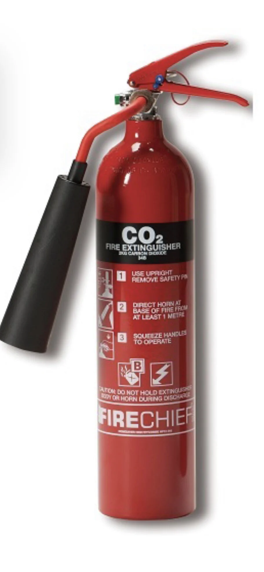 Carbon dioxide extinguishers are used for combating class B and electrical fires – they suffocate the fire by displacing oxygen in the air. Because they do not leave any substances behind and so minimise damage done to equipment, unlike other extinguishers, they are particularly useful for offices and workshops where electrical fires may occur.